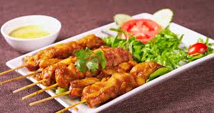 Satay x 4 -(Sliced chicken marinated in herbs & spices served with peanut sauce, accompanied by salad in sweet vinegar sauce)Nuer Pat Ga Pau -(Fried beef with chilli, garlic & Thai herbs)